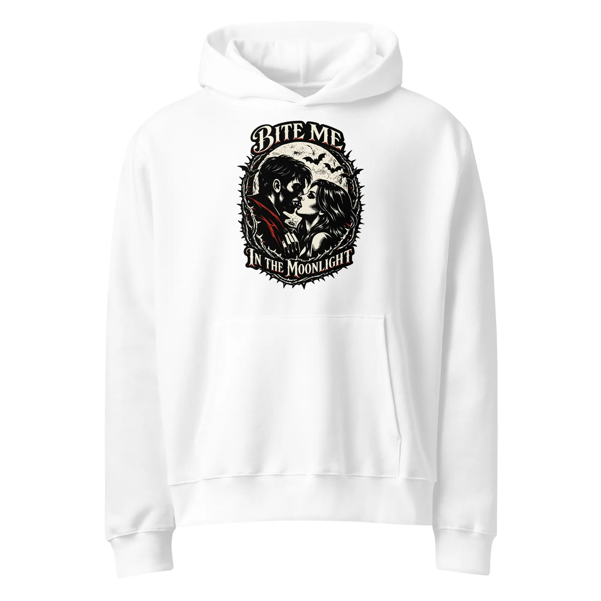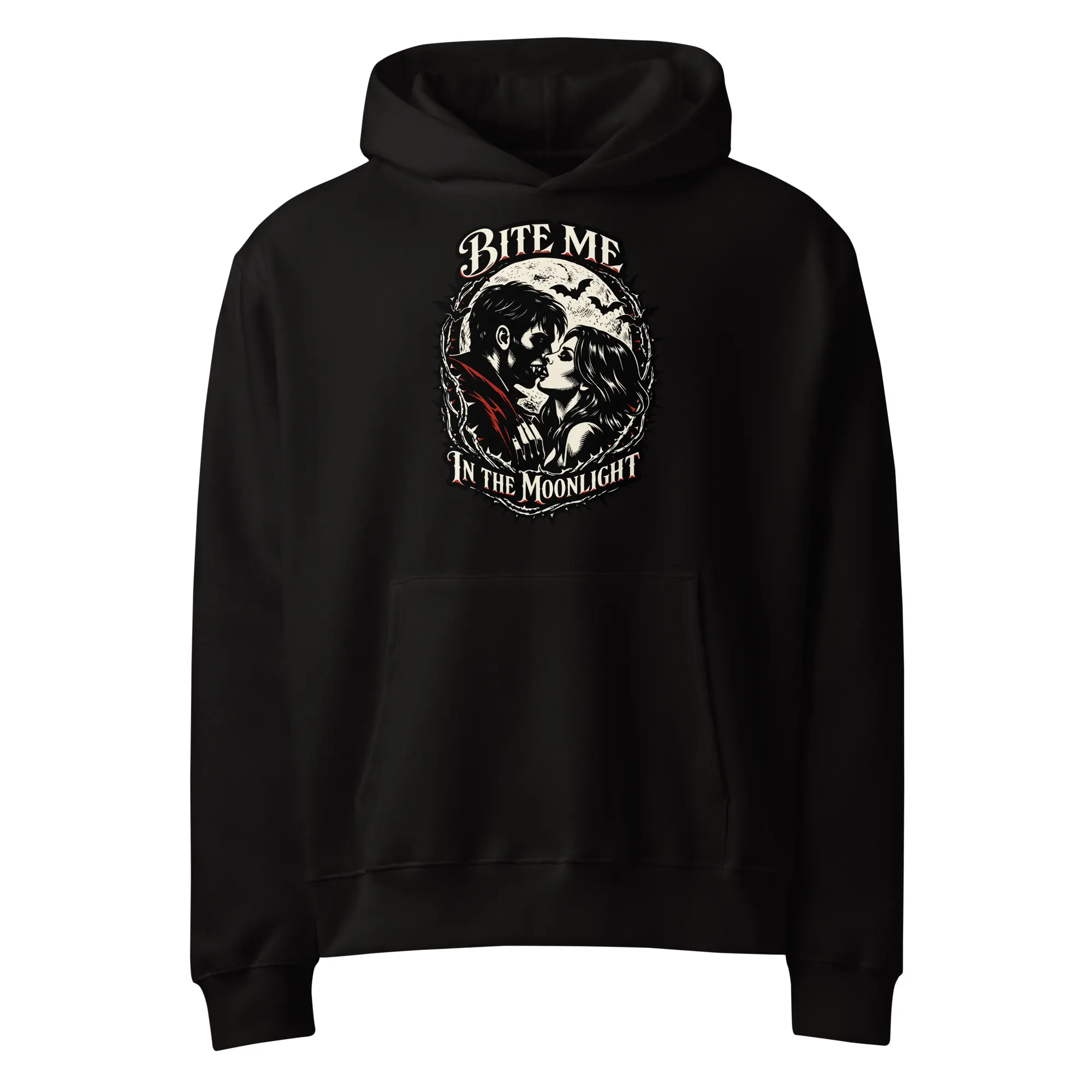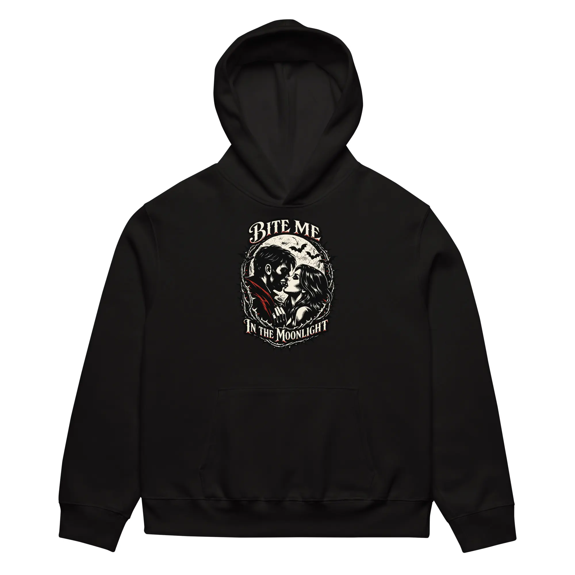 For the children of the night. This heavyweight hoodie carries the “Bite Me In The Moonlight” graphic, designed for those who embrace their animal instincts. The high-contrast, skeletal visual offers a bold, cinematic aesthetic that prioritizes anatomical precision and moonlit surrealism.
