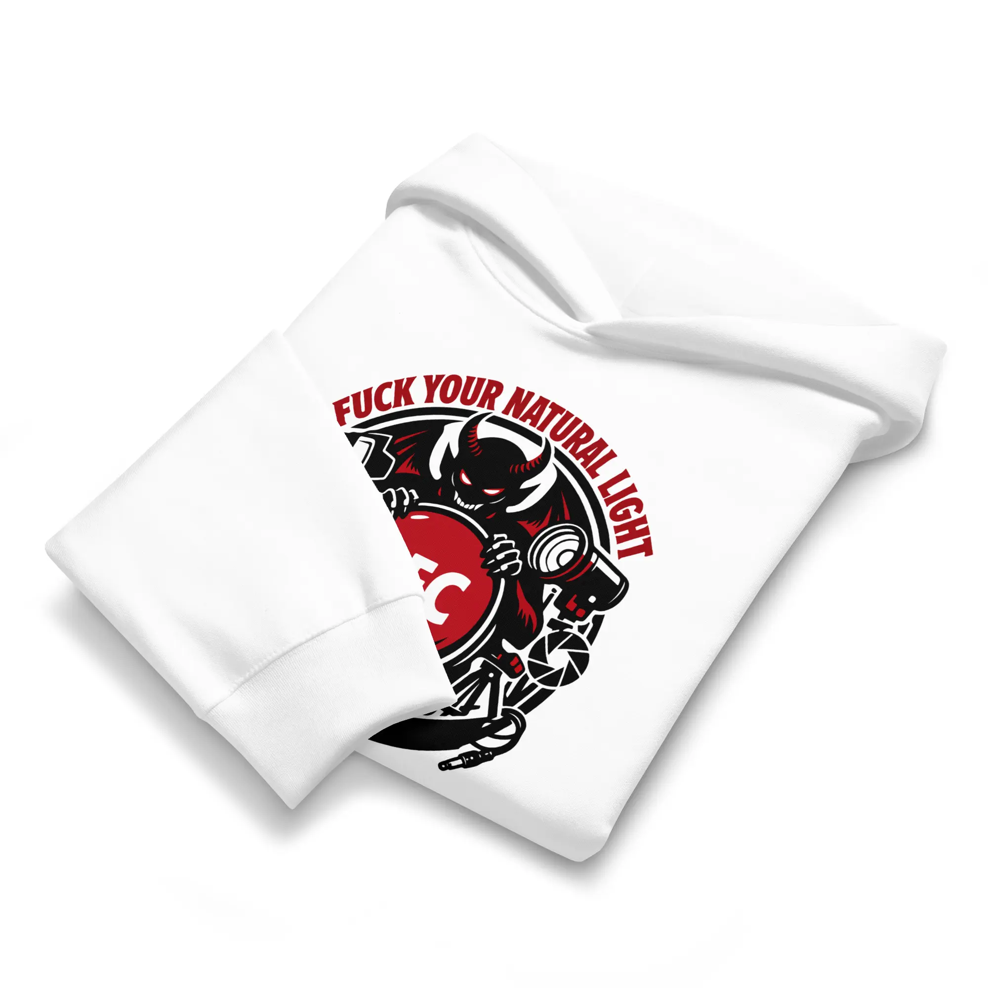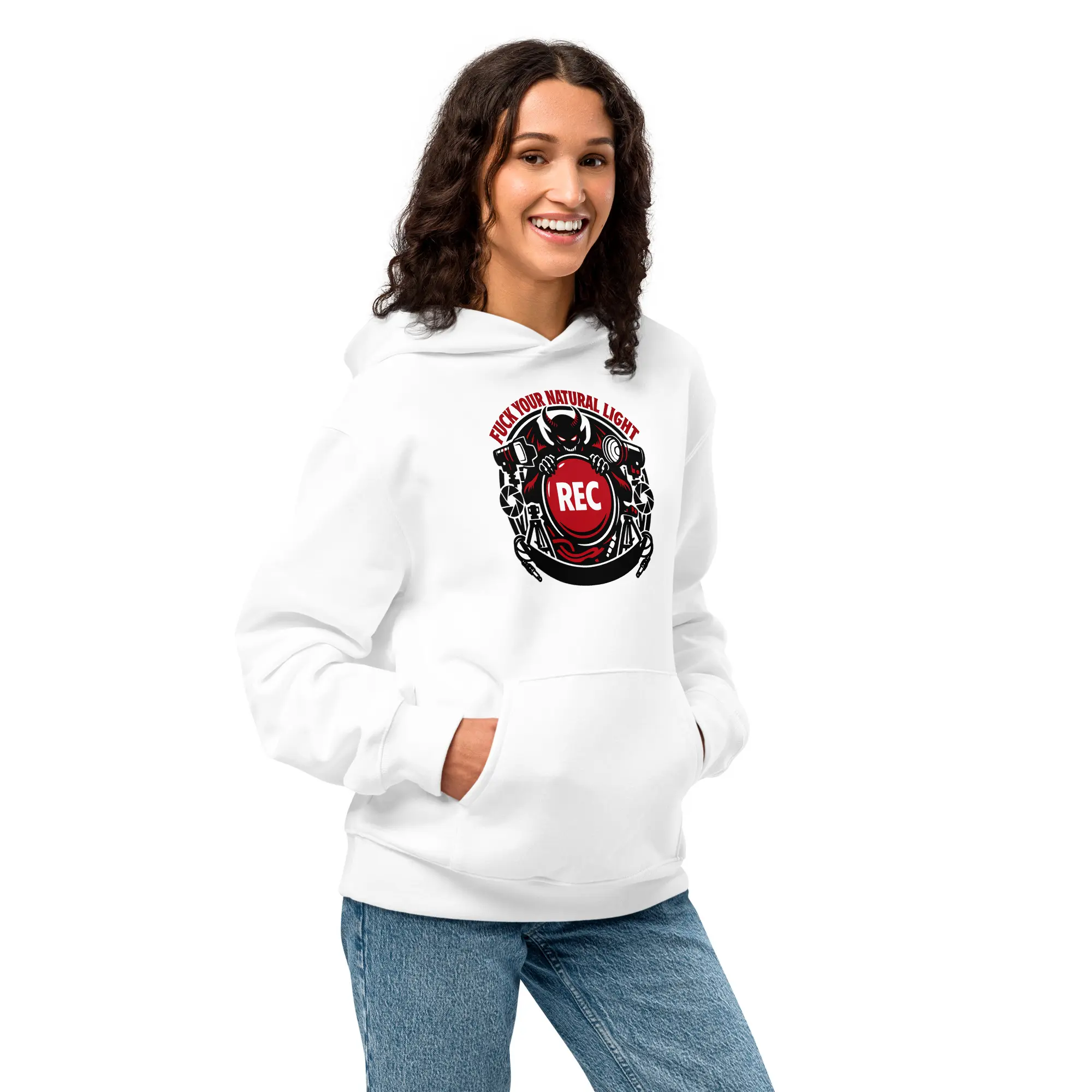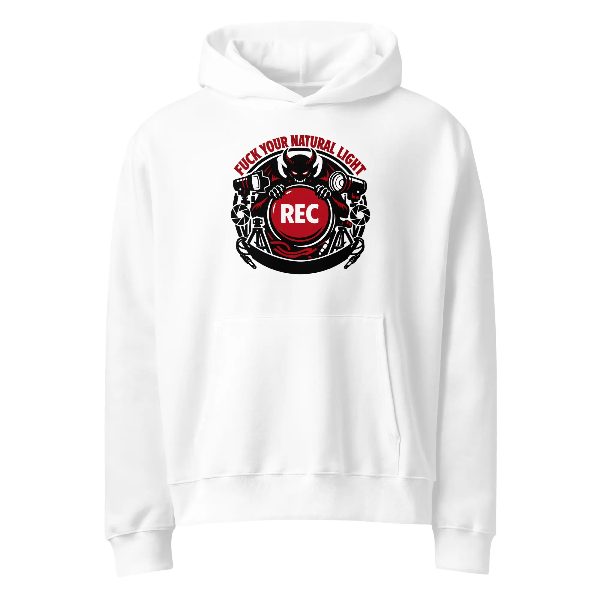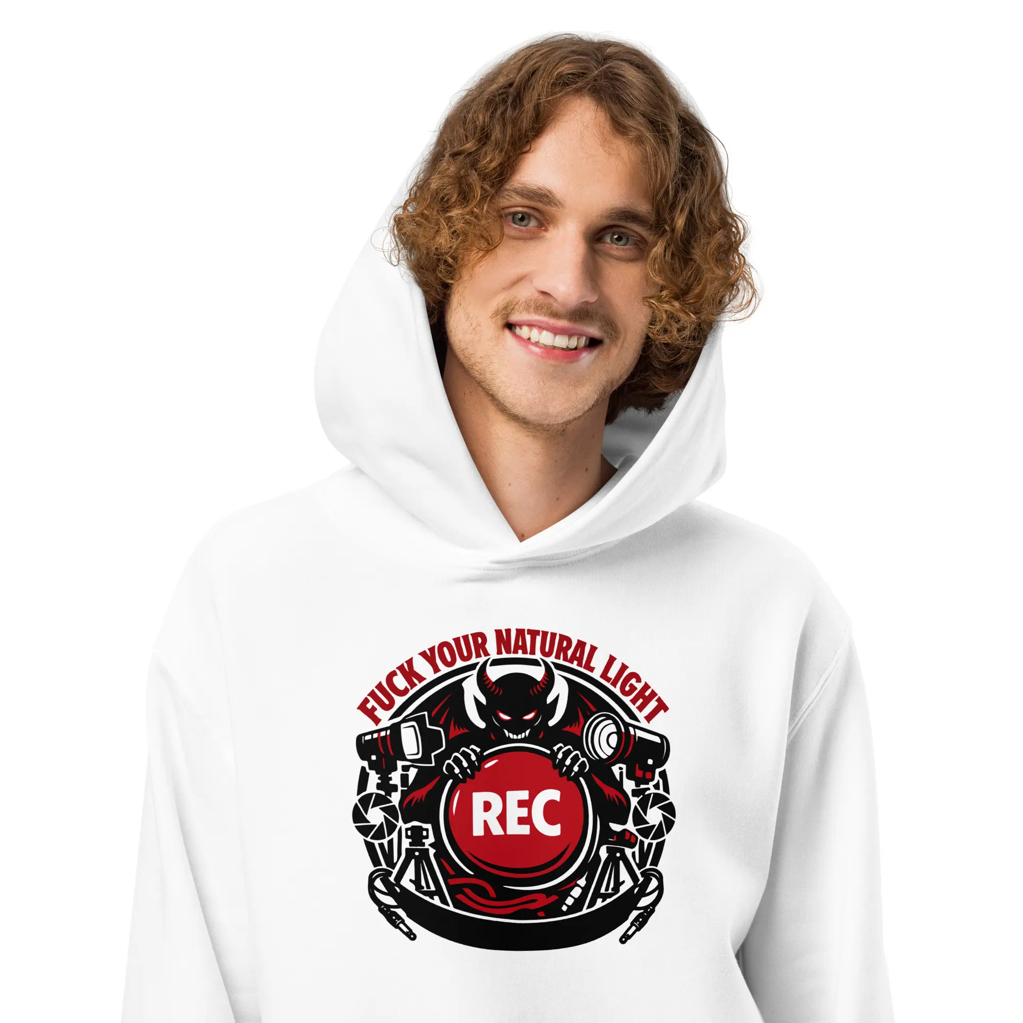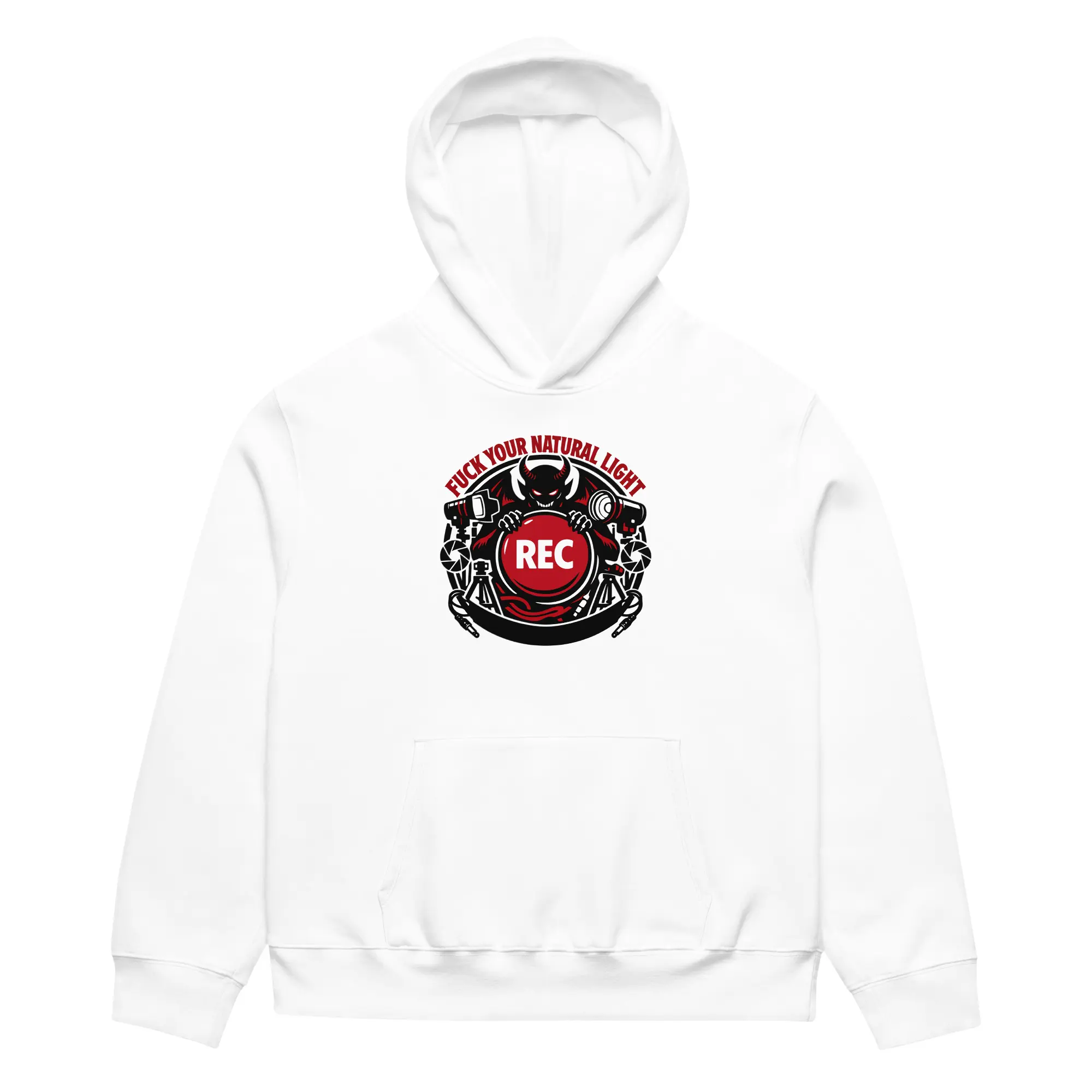 The sun doesn’t work for us. This heavyweight hoodie carries the Fuck Your Natural Light graphic, designed for the technicians who thrive in the dark. The high-contrast visual prioritizes the mechanical detail of the lighting gear and the surrealist presence of the figure. The fit is oversized and built for the long haul using thick brushed fleece for a heavy, solid silhouette. No drawcords, just a clean, streamlined design for a professional look behind the camera.
