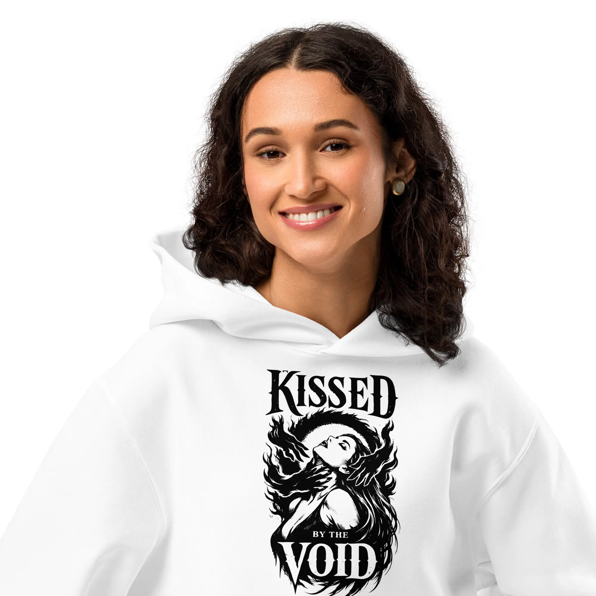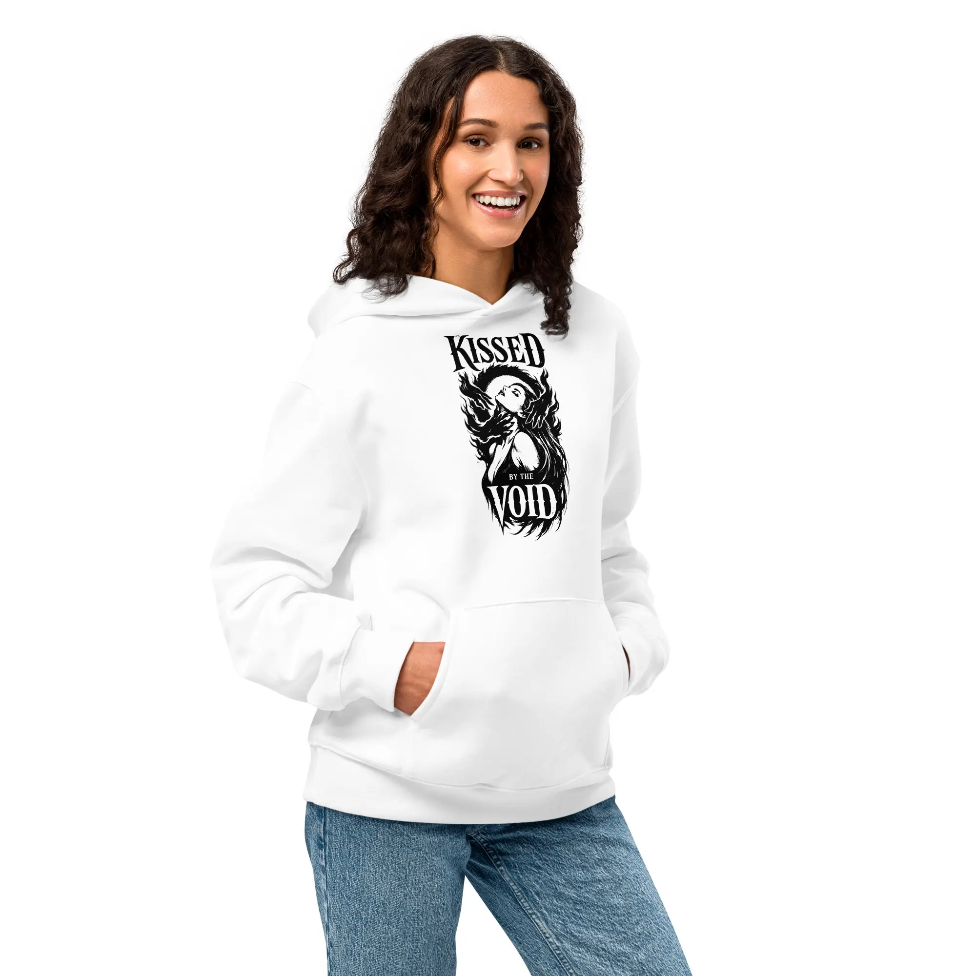 Lost in the infinite. This heavyweight hoodie carries the “Kissed By The Void” graphic, designed for those who embrace the beauty of the unknown. The high-contrast, atmospheric visual offers a bold, cinematic aesthetic that prioritizes ethereal textures and surrealist depth.