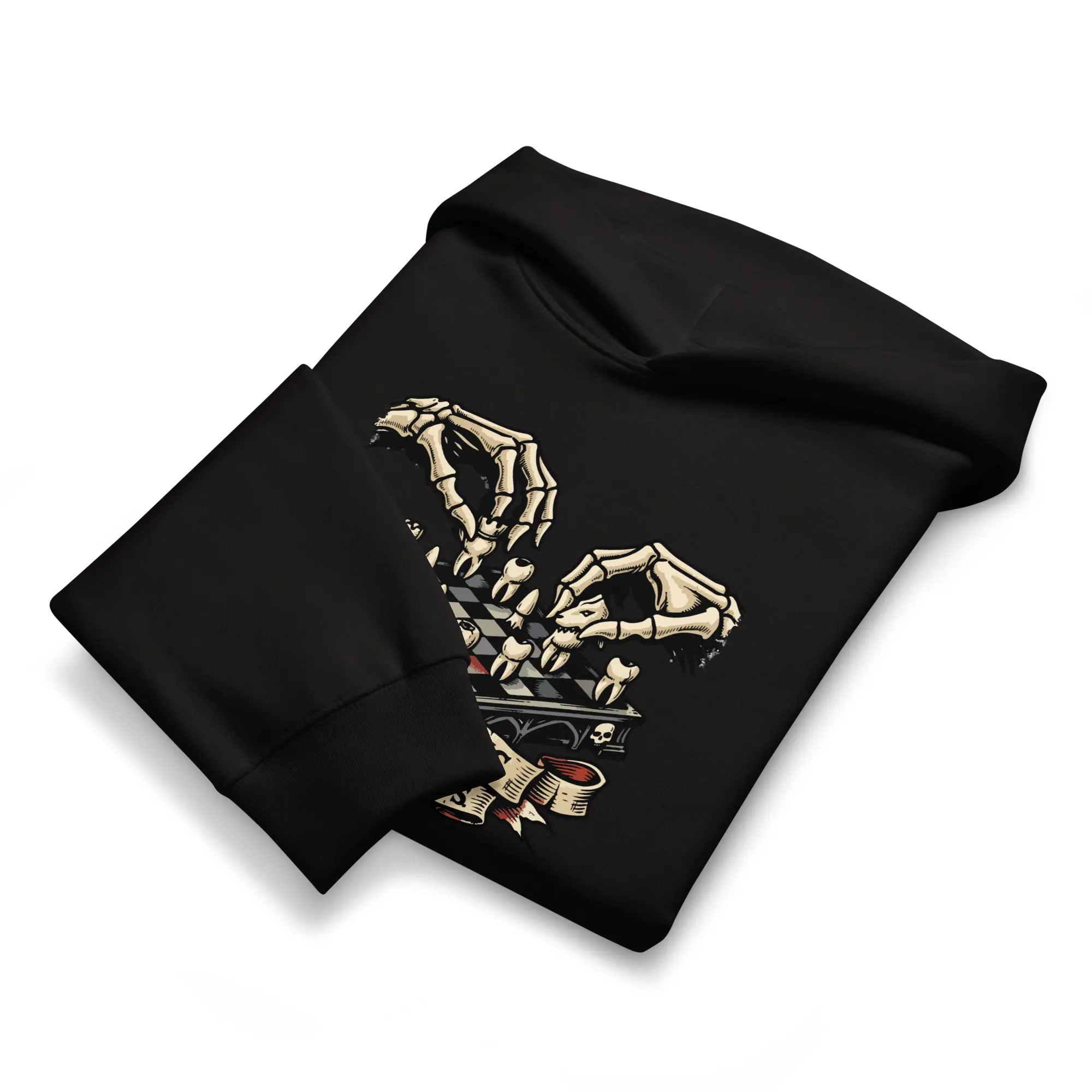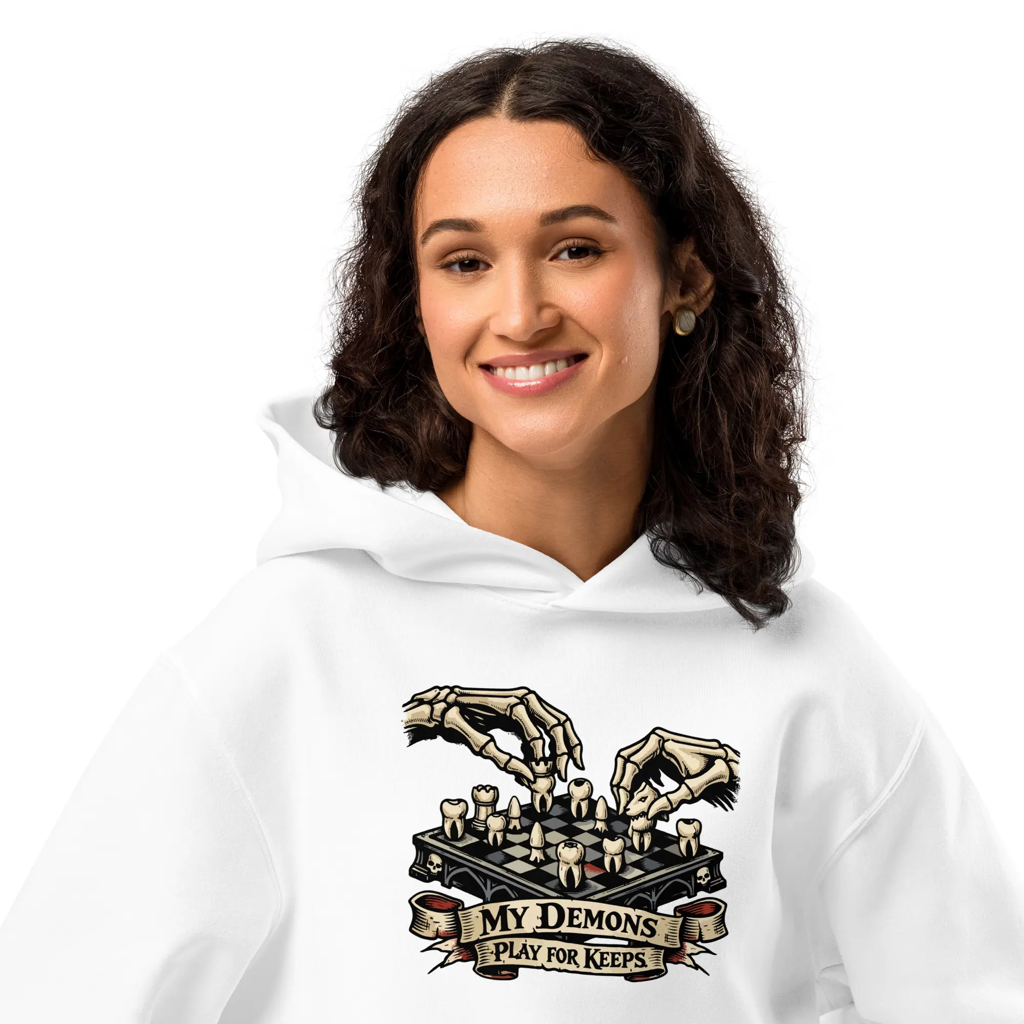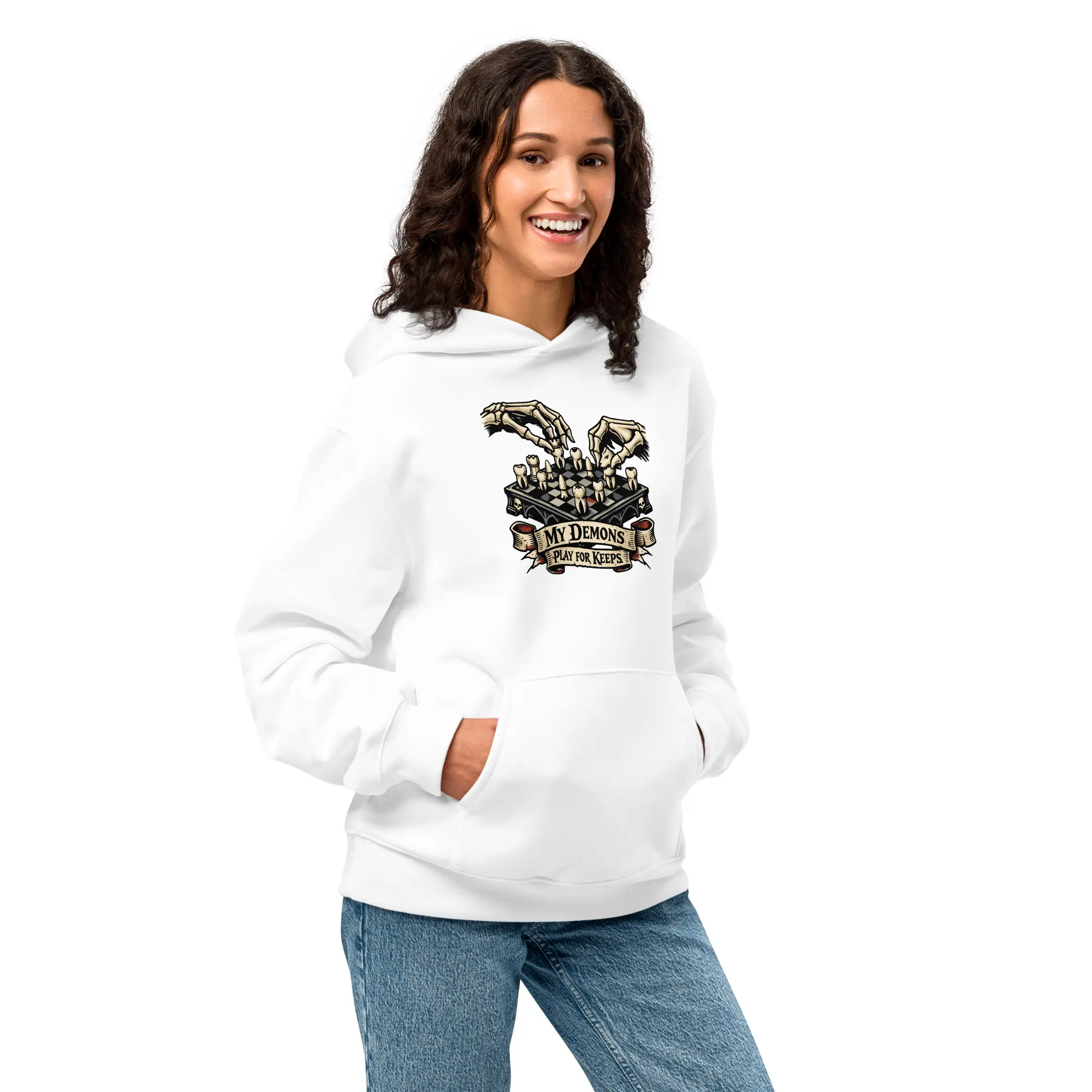 Checkmate your shadows. This heavyweight hoodie carries the “Play For Keeps” graphic, designed for those who find their strength in the mental architecture of survival. The high-contrast visual offers a bold, cinematic look that prioritizes the macabre detail of the dental chessboard and the skeletal precision of the player.