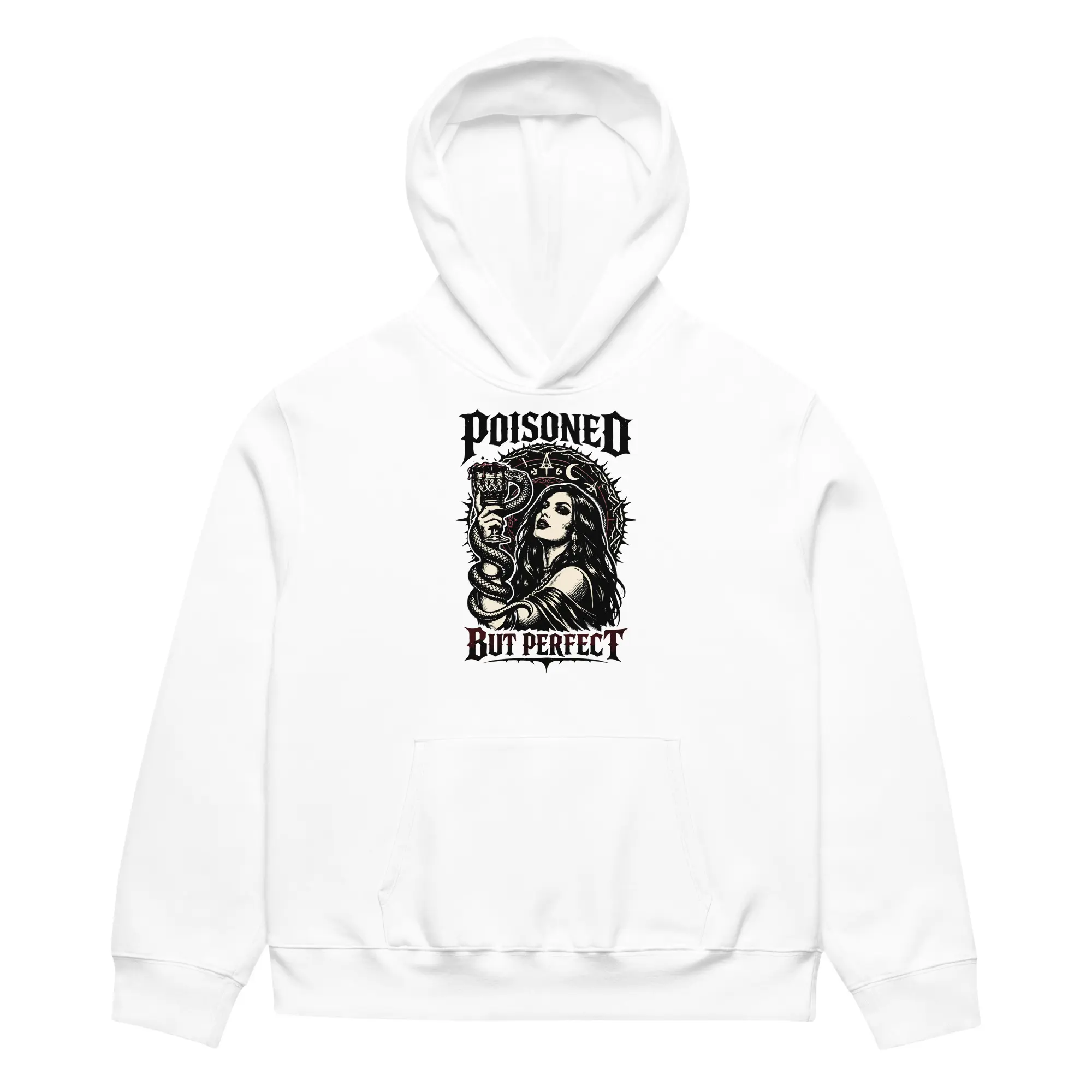 This heavyweight hoodie carries the Poisoned But Perfect graphic for those who find power in a refined, dark aesthetic. The high-contrast visual prioritizes intricate anatomical detail and surrealist elegance. The fit is oversized and built for the long haul using thick brushed fleece for a heavy silhouette. No drawcords, just a clean, streamlined design for a modern, high-fashion look.