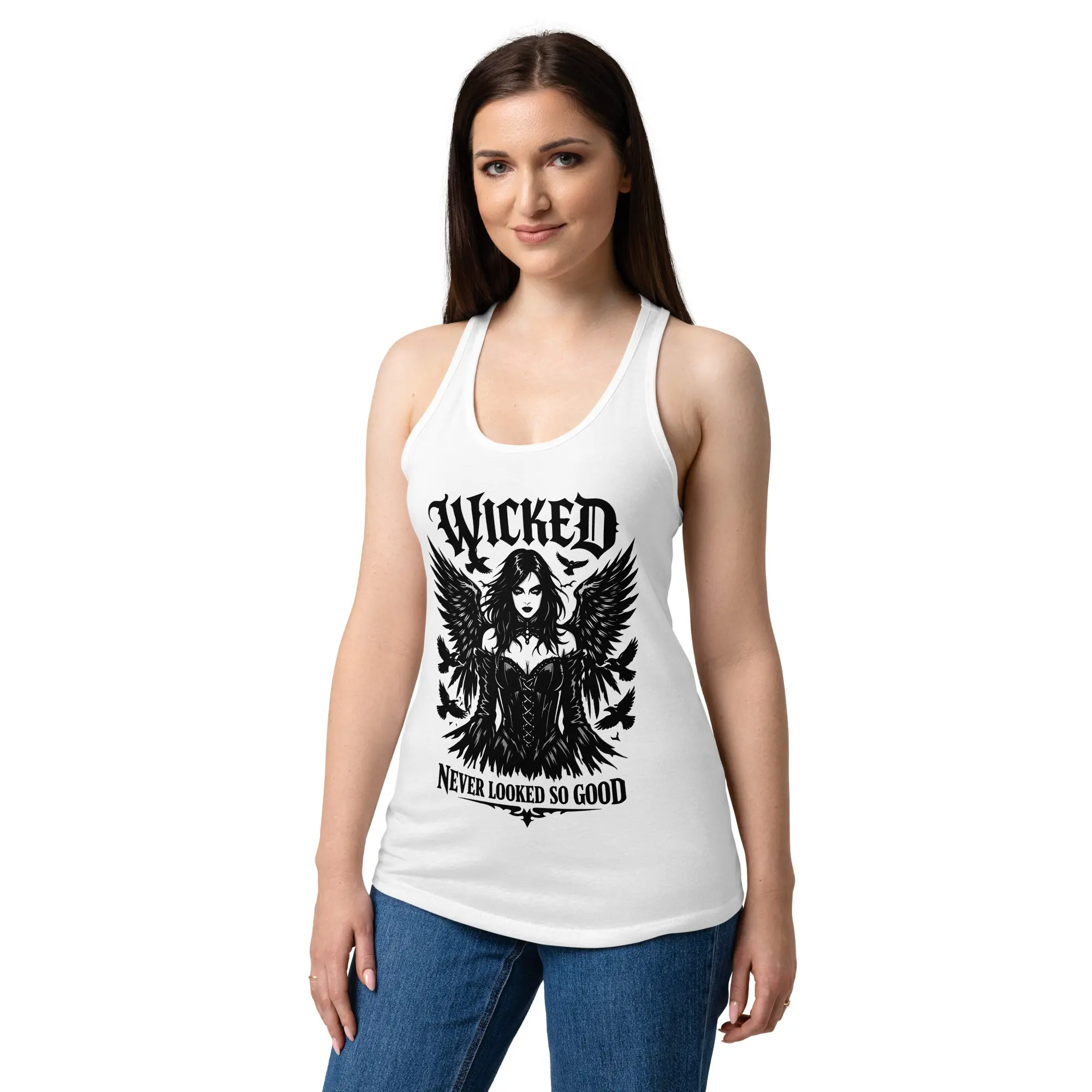 Lethally elegant. This fitted racerback tank is for the women who own every room they walk into—regardless of how dark it is. The graphic is rendered in high-fidelity detail, making it a standout piece for anyone who values a dark, gothic aesthetic in a sleek, athletic cut.