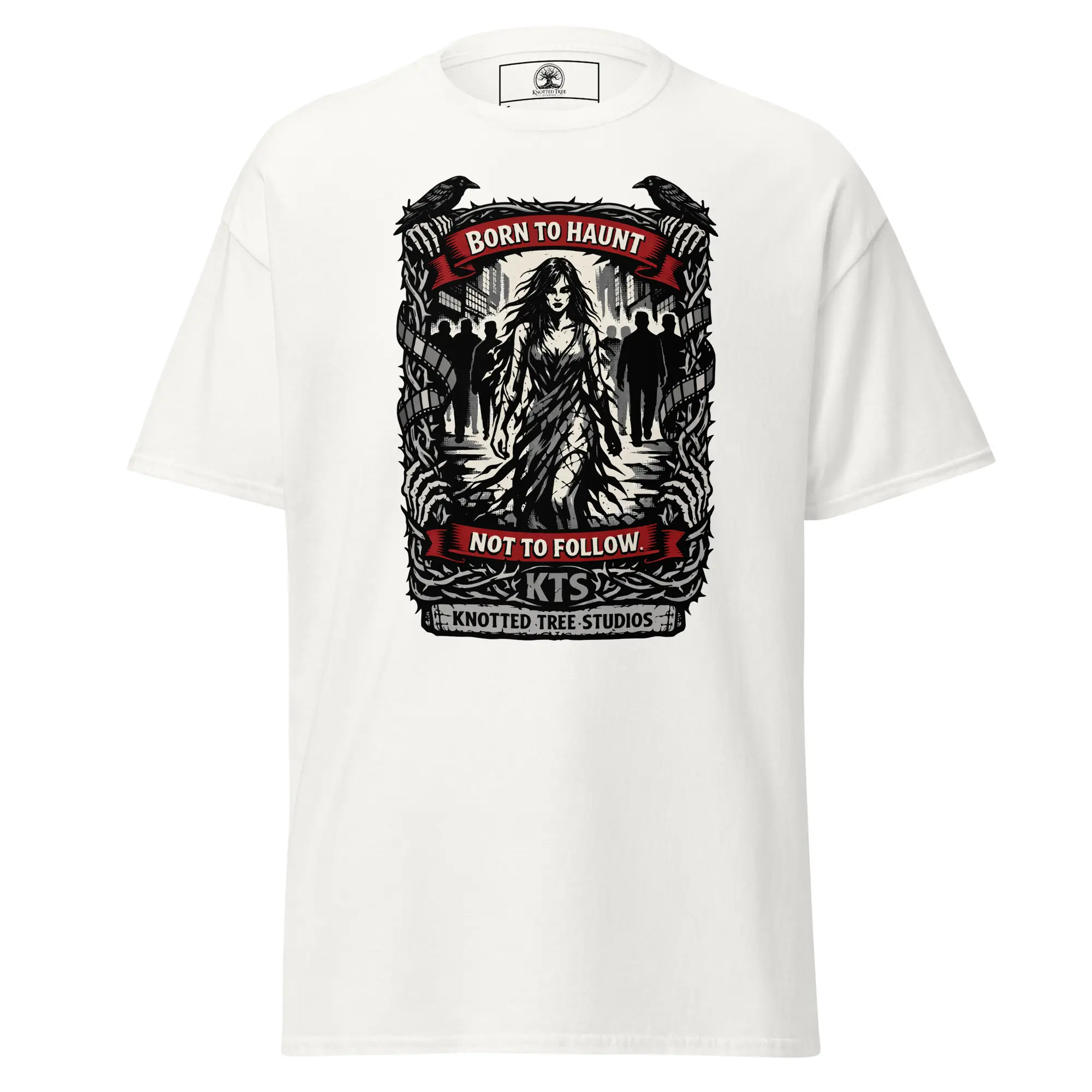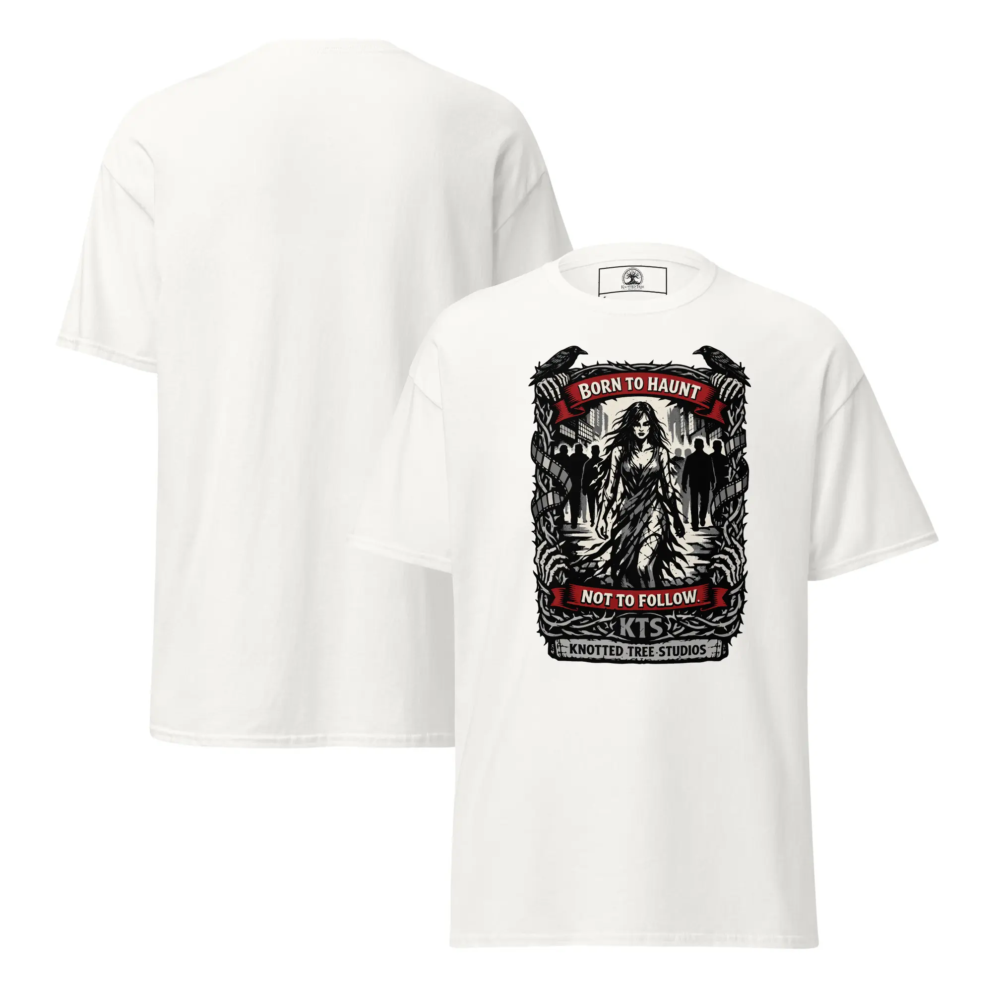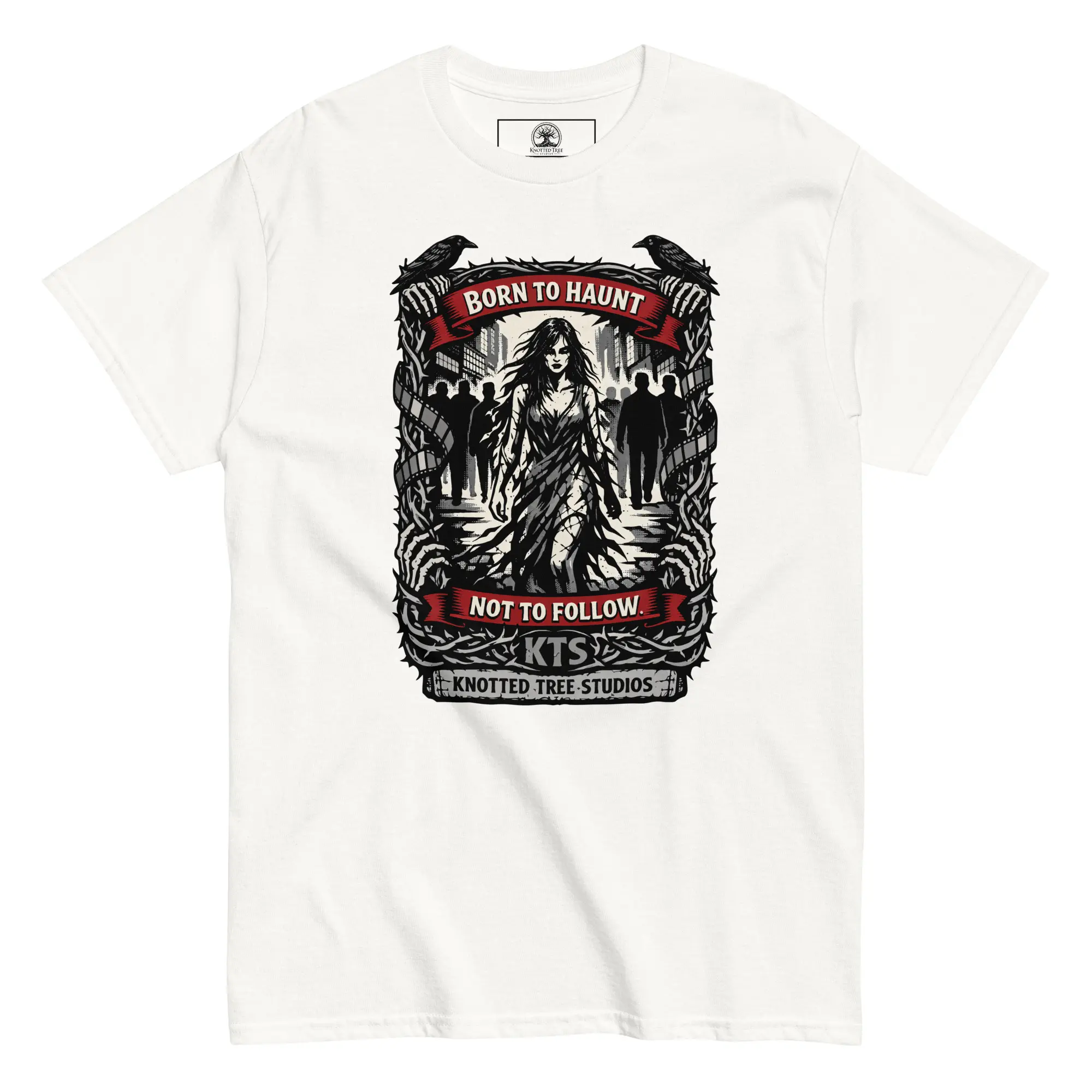 Presence is felt, not seen. This design is for the spirits who move through the world on their own frequency. “Born to Haunt, Not to Follow” features a high-fidelity, surrealist graphic of a shrouded specter—a symbol for those who prefer to leave a lingering impression rather than following the crowd. It’s a clean, structured look that fits perfectly into an alternative wardrobe.