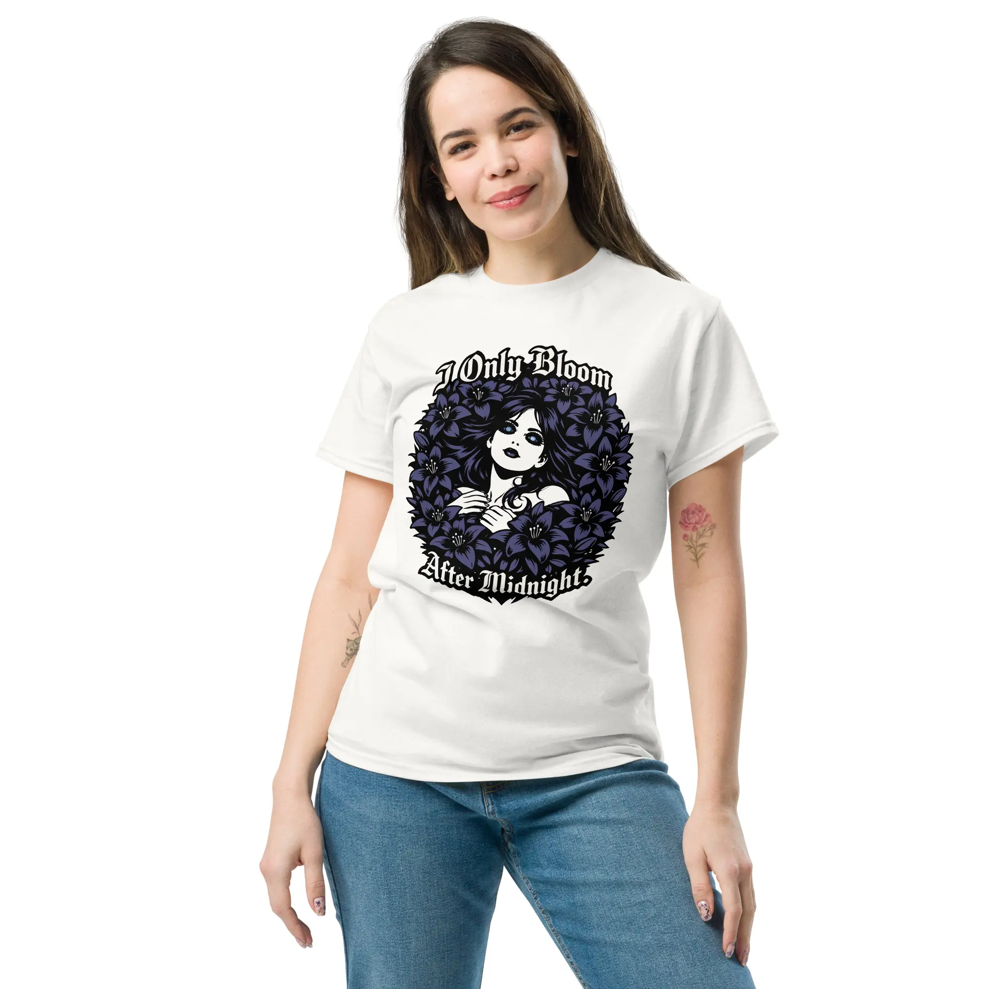 Growth doesn’t always need the sun. This shirt features a high-fidelity graphic of a model intertwined with botanical textures, representing the beauty of the midnight hours. It offers a sharp, intentional fit that holds its silhouette, ensuring the intricate floral and anatomical details remain the focal point. Built for those who do their best work while the world sleeps.
