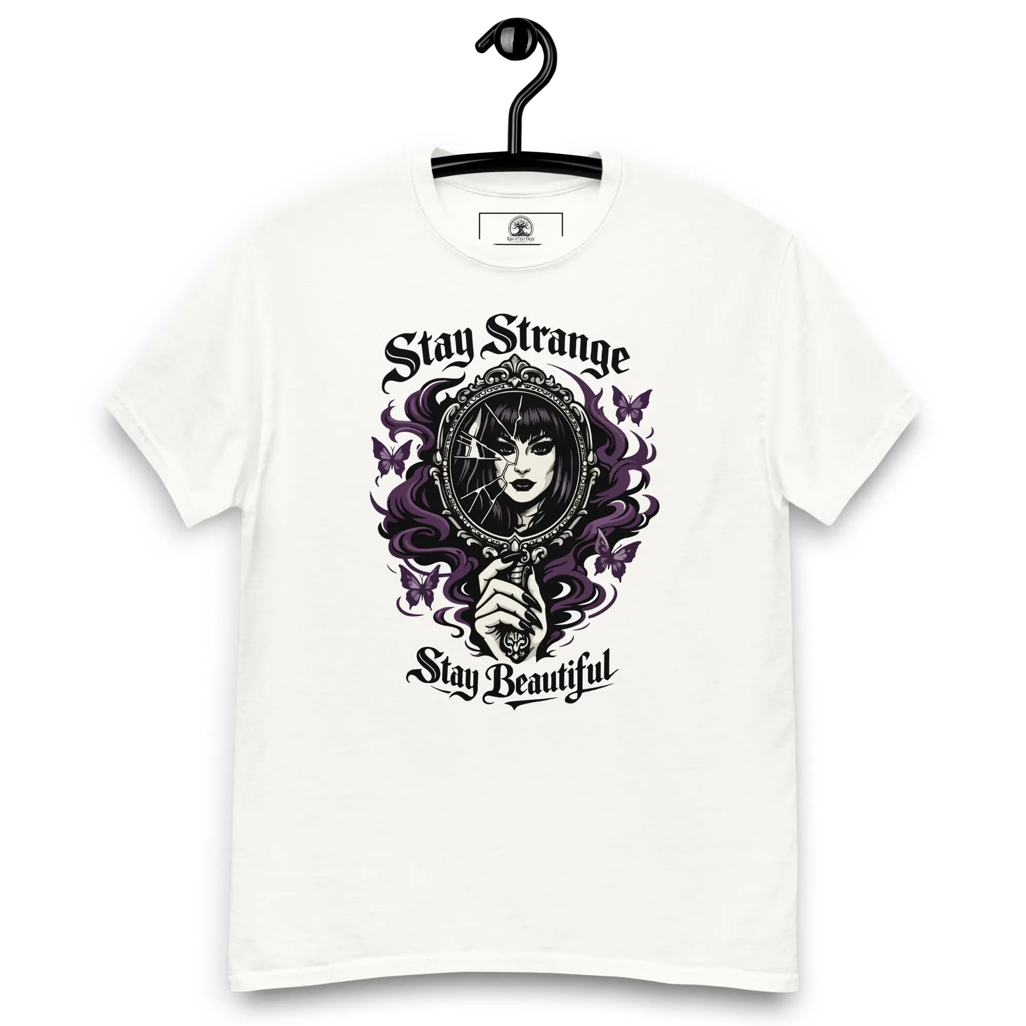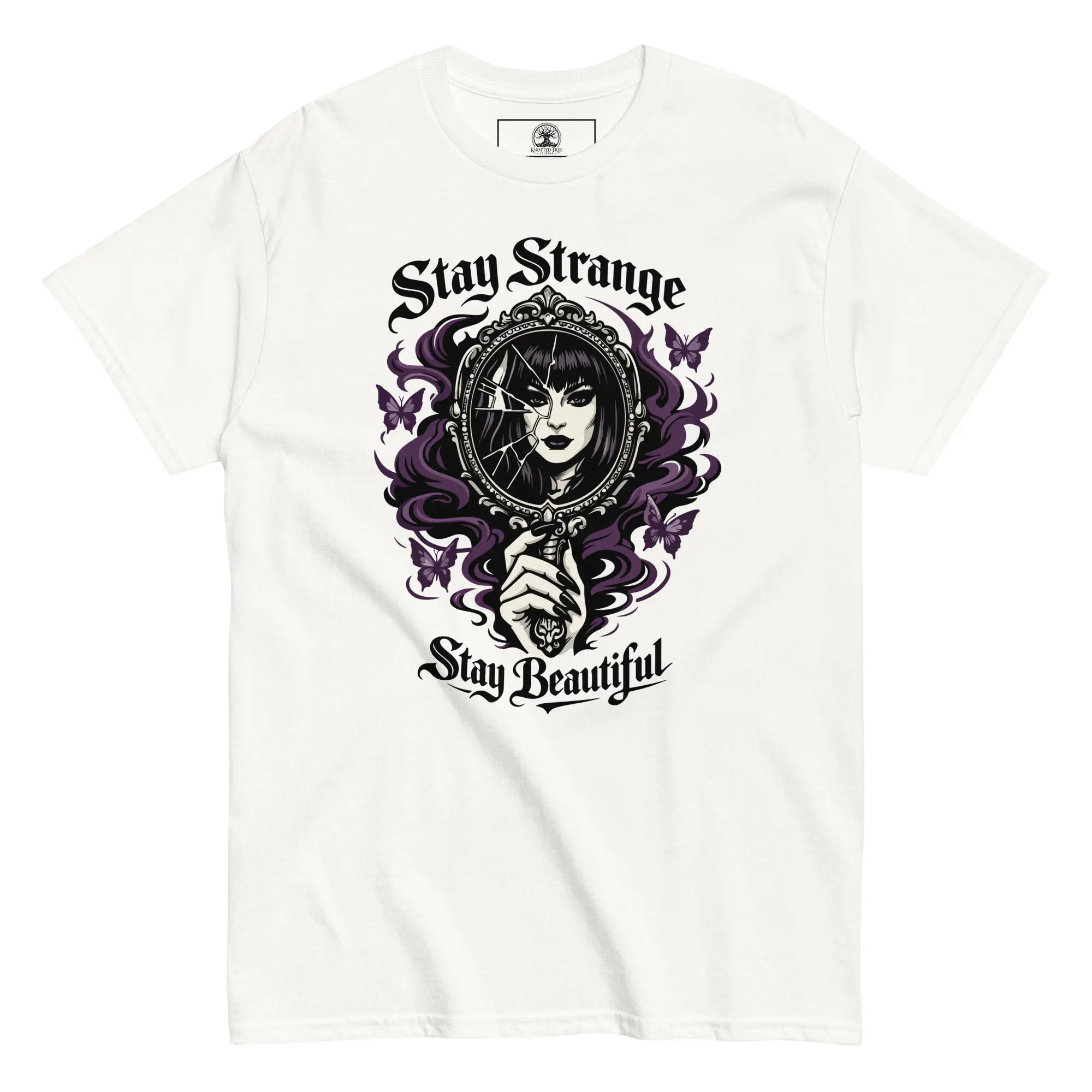 Normality is the only real curse. This design is for the misfits, the creators, and the ones who find their power in being “other.” “Stay Strange, Stay Beautiful” features a high-fidelity, surrealist graphic that merges anatomical detail with a haunting, regal elegance. It’s a clean, structured look for those who wear their uniqueness like a crown.