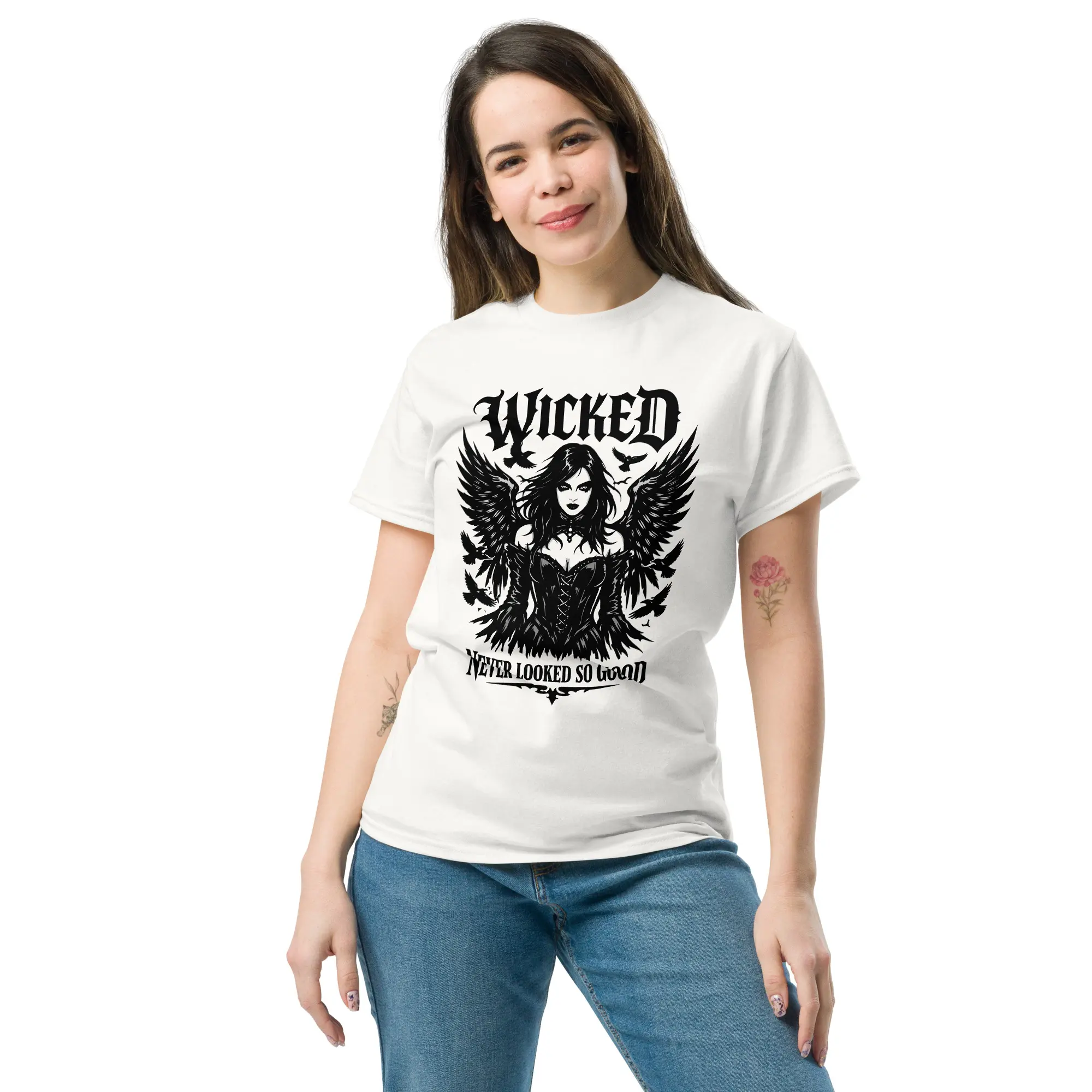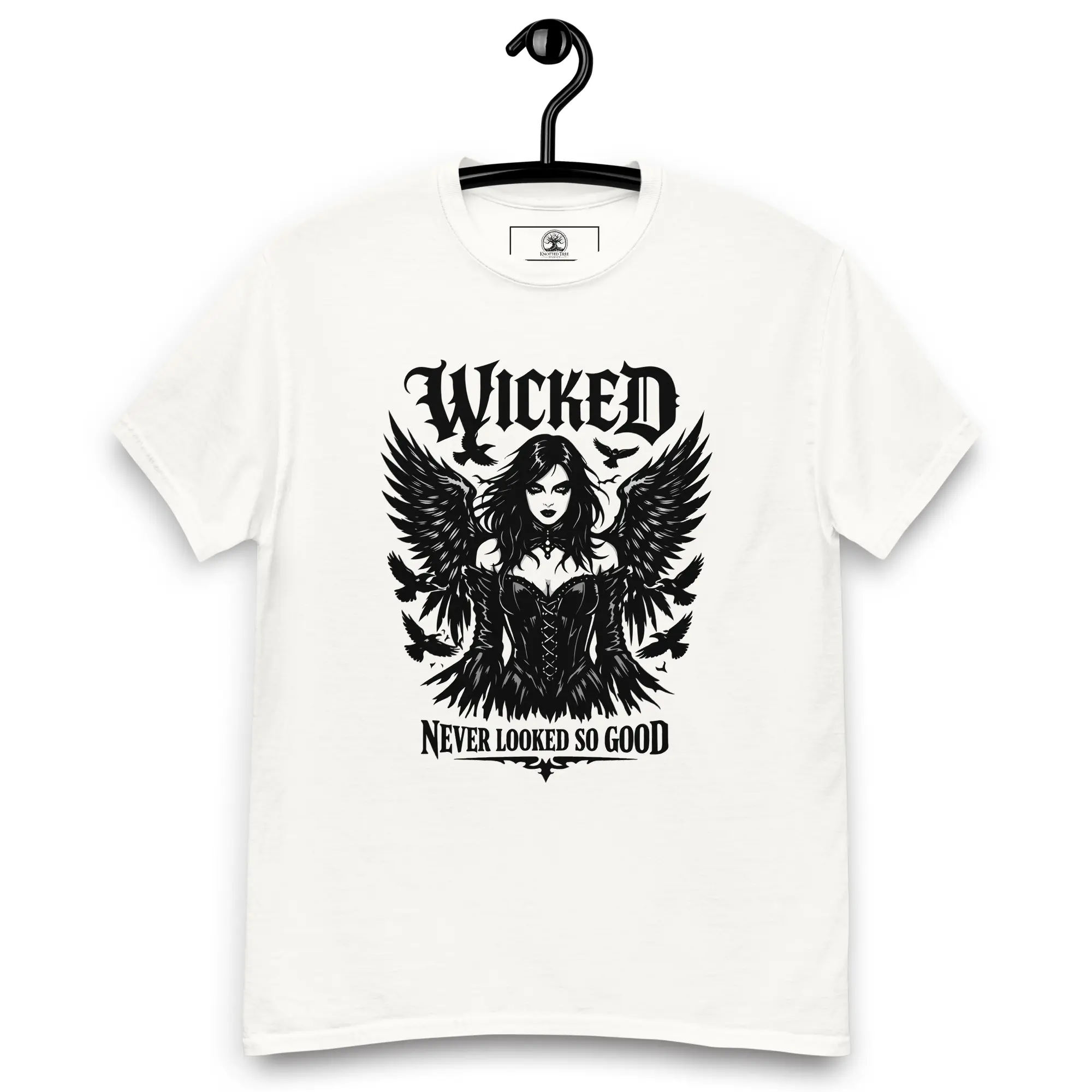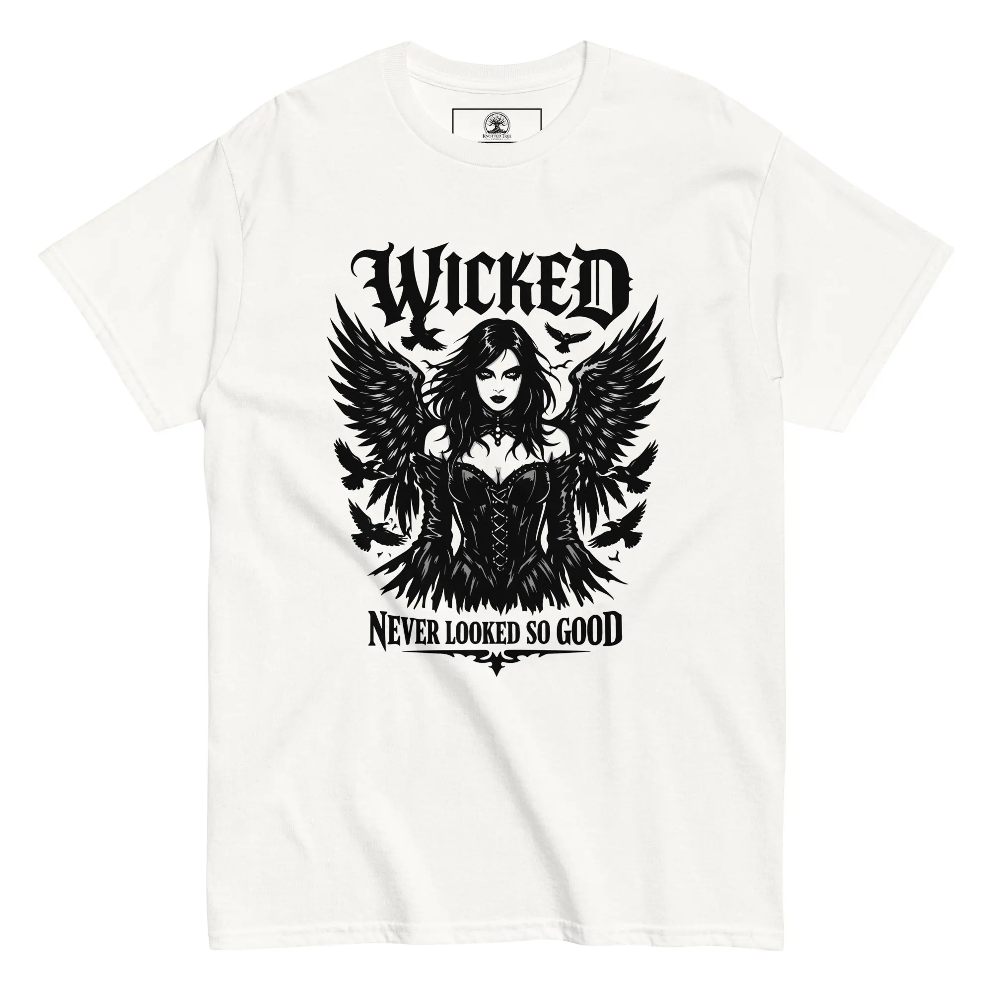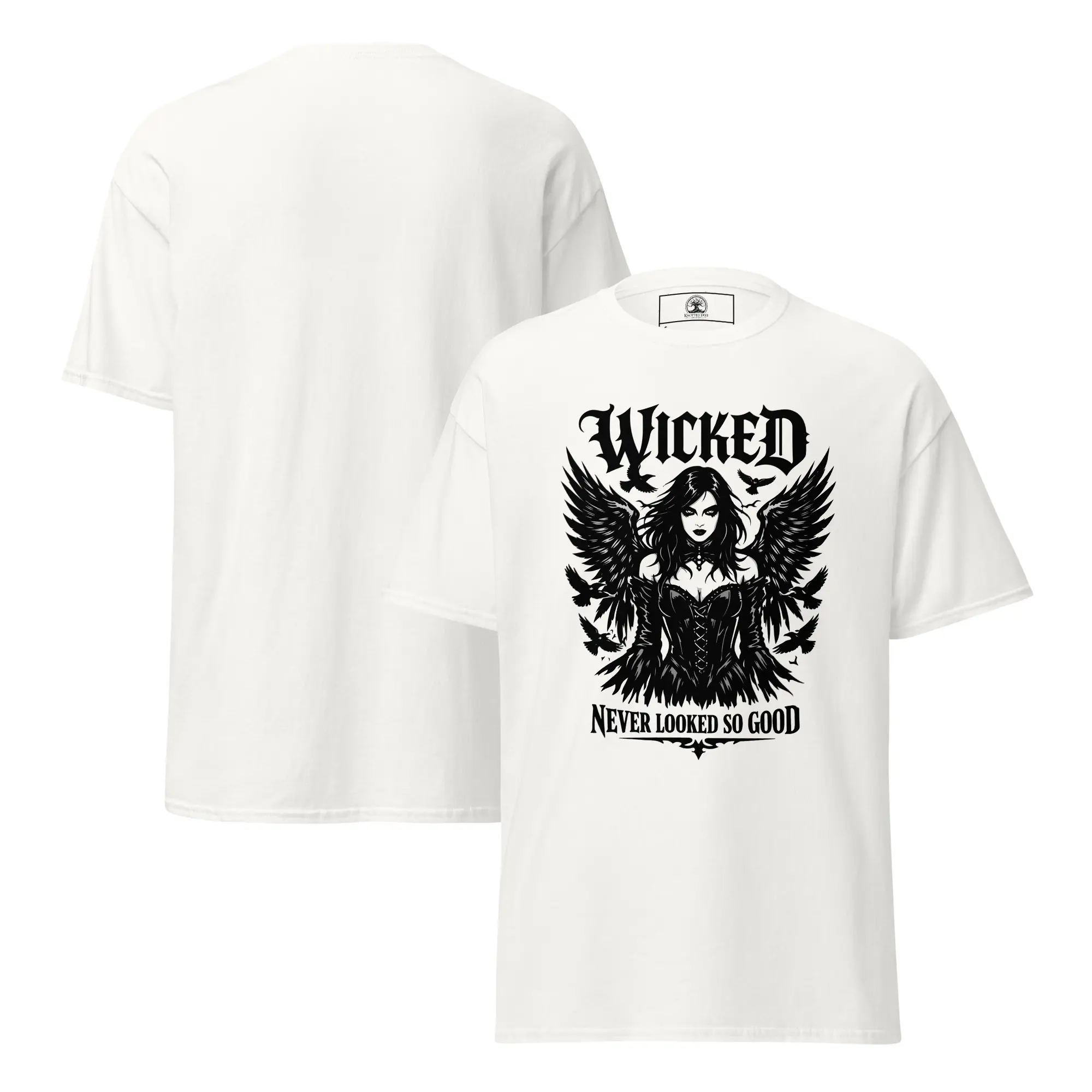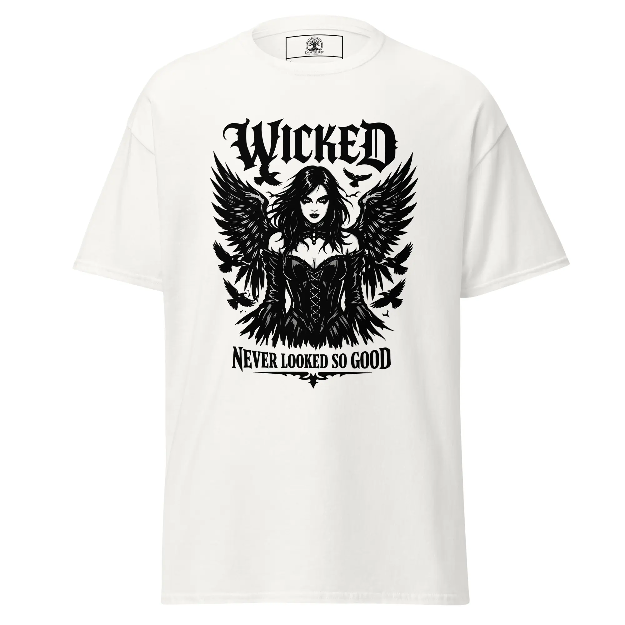 Beauty has a sharp edge. This design is for those who carry their darkness with a sense of style. “Wicked Never Looked So Good” features a high-fidelity, surrealist graphic of a cloaked, skeletal entity—proving that the macabre can be incredibly elegant. It’s a clean, structured look for the individual who knows that the most captivating stories are the ones told in the dark.