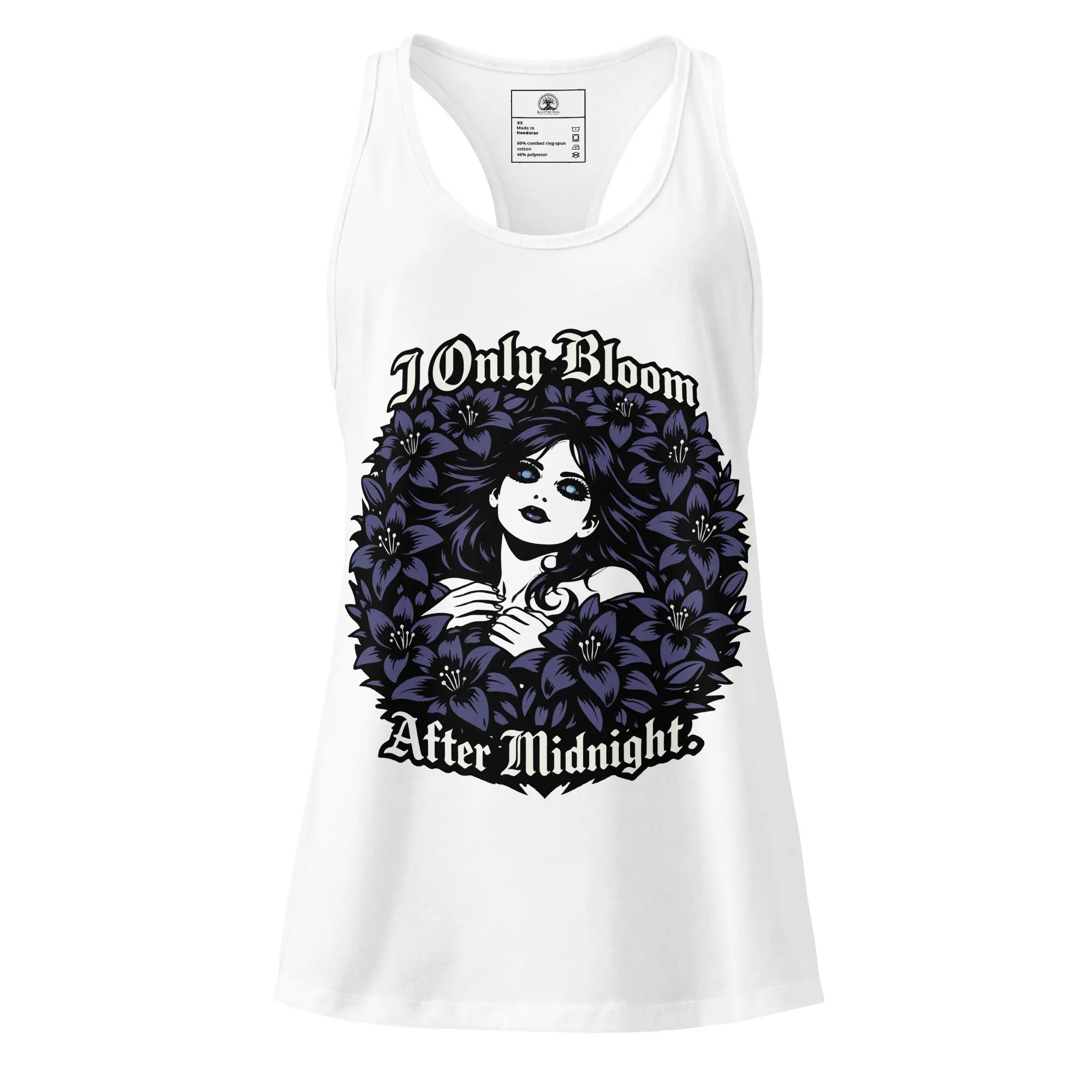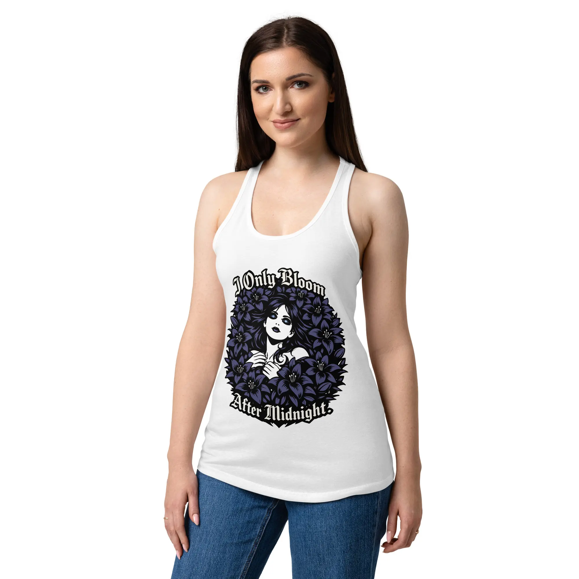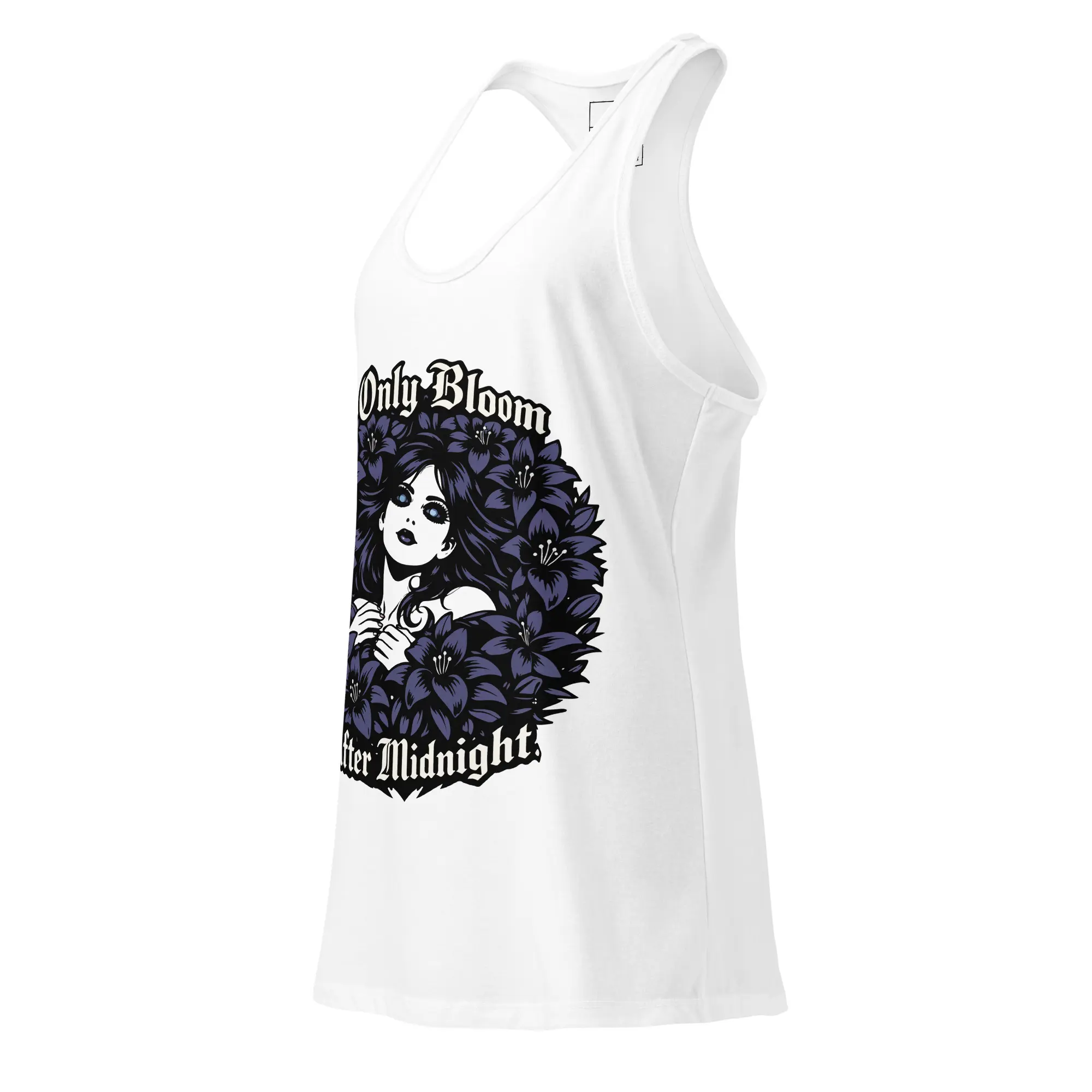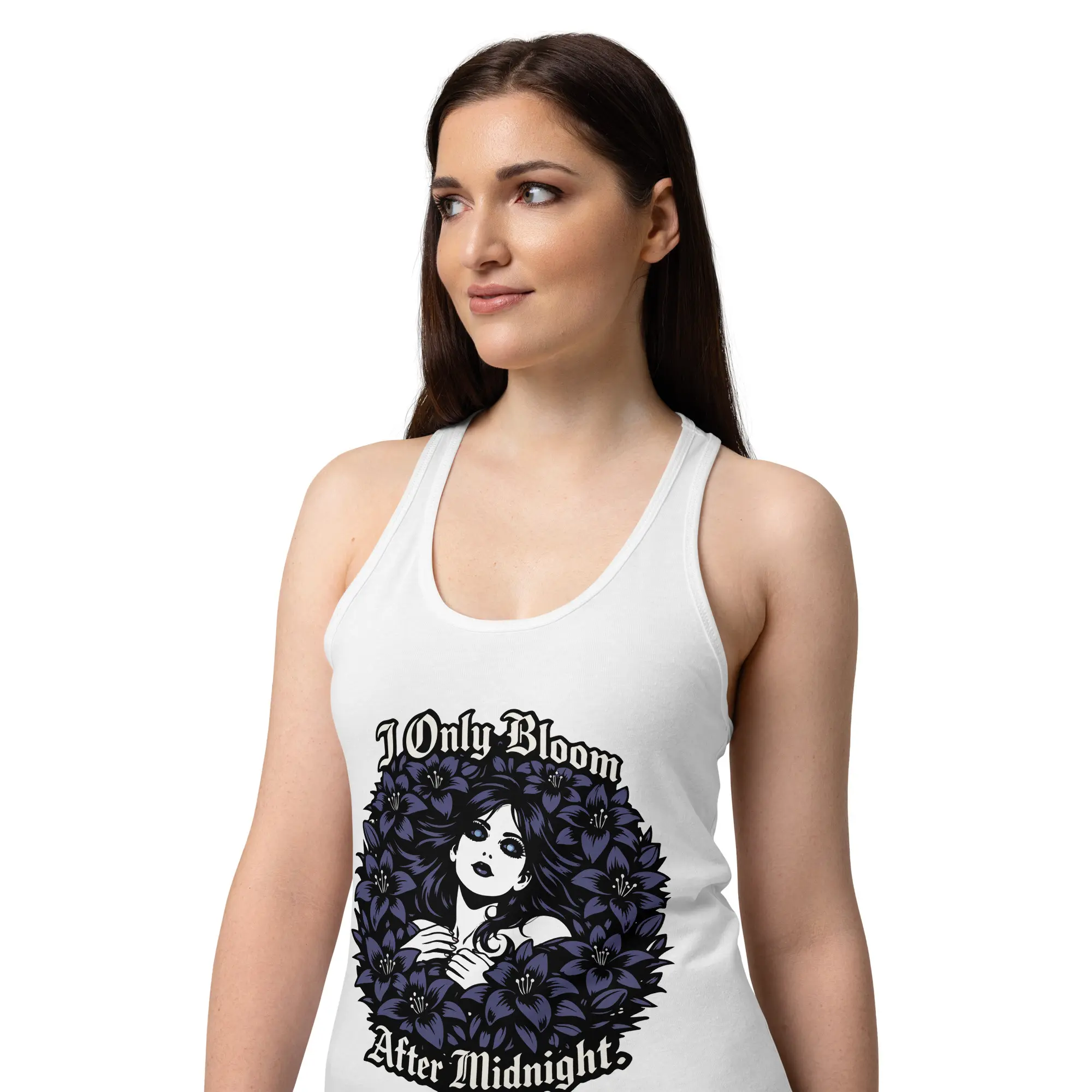 A fitted racerback tank for the women who find their power in the moonlight. The graphic is rendered in high-fidelity detail, making it a standout piece for a dark, ethereal aesthetic in a sleek, athletic cut. The lightweight jersey fabric is breathable and stretchy, maintaining a fitted, second-skin silhouette for the studio, the stage, or the street.