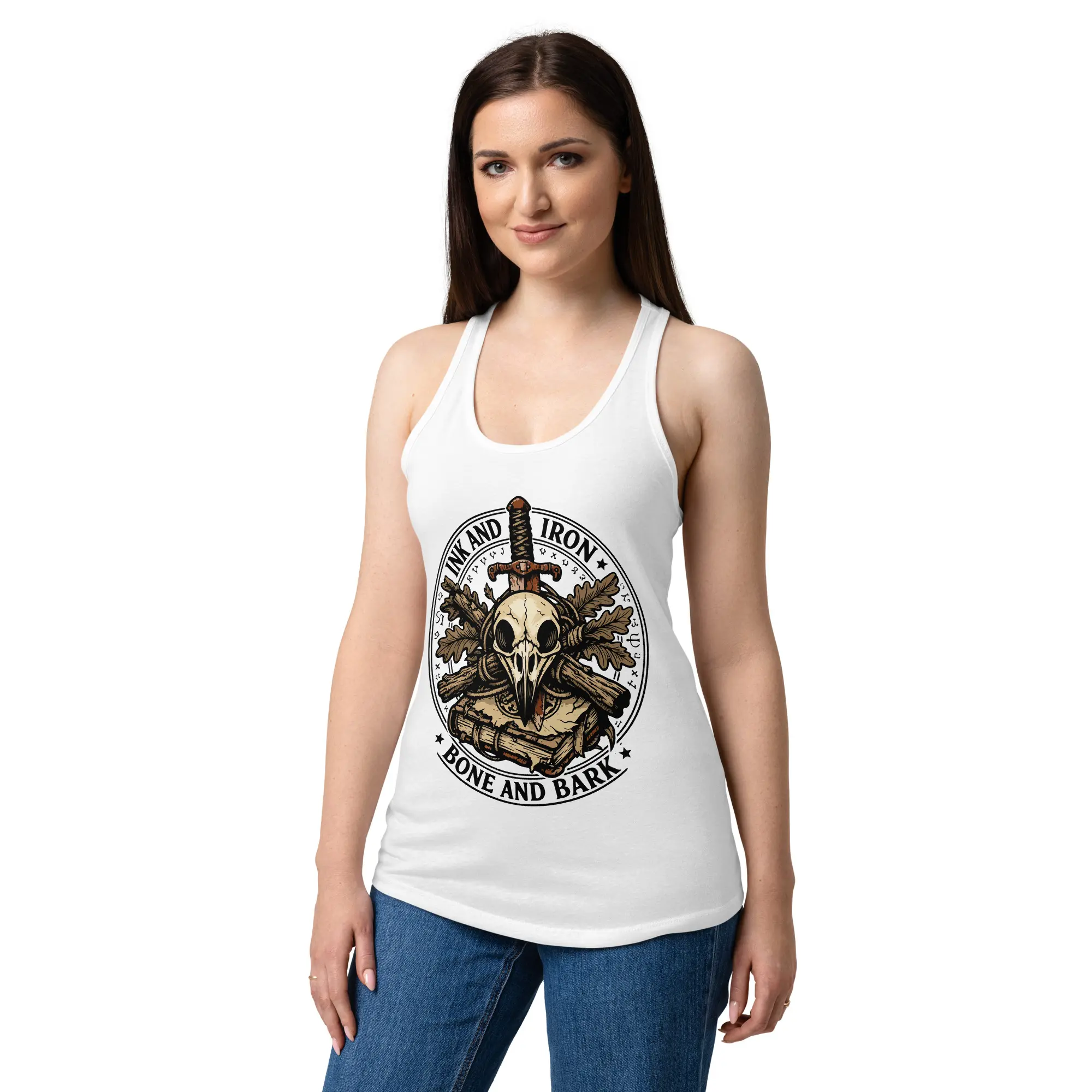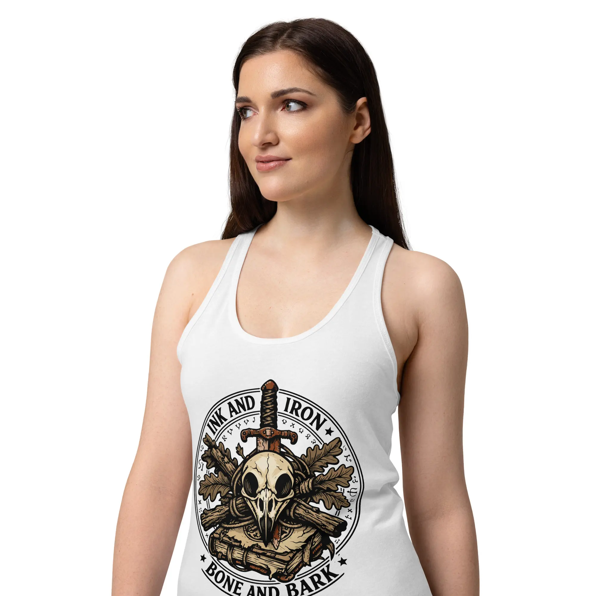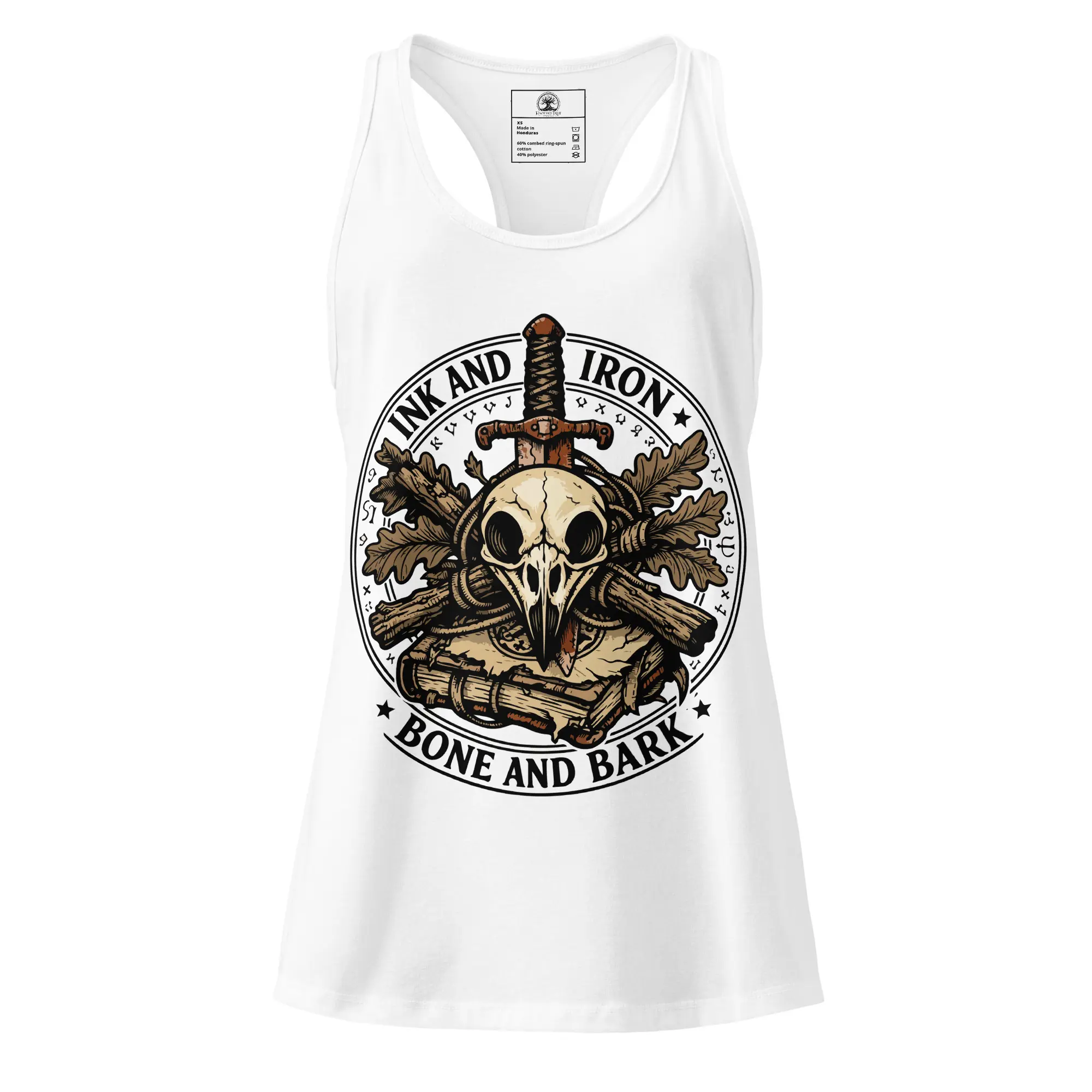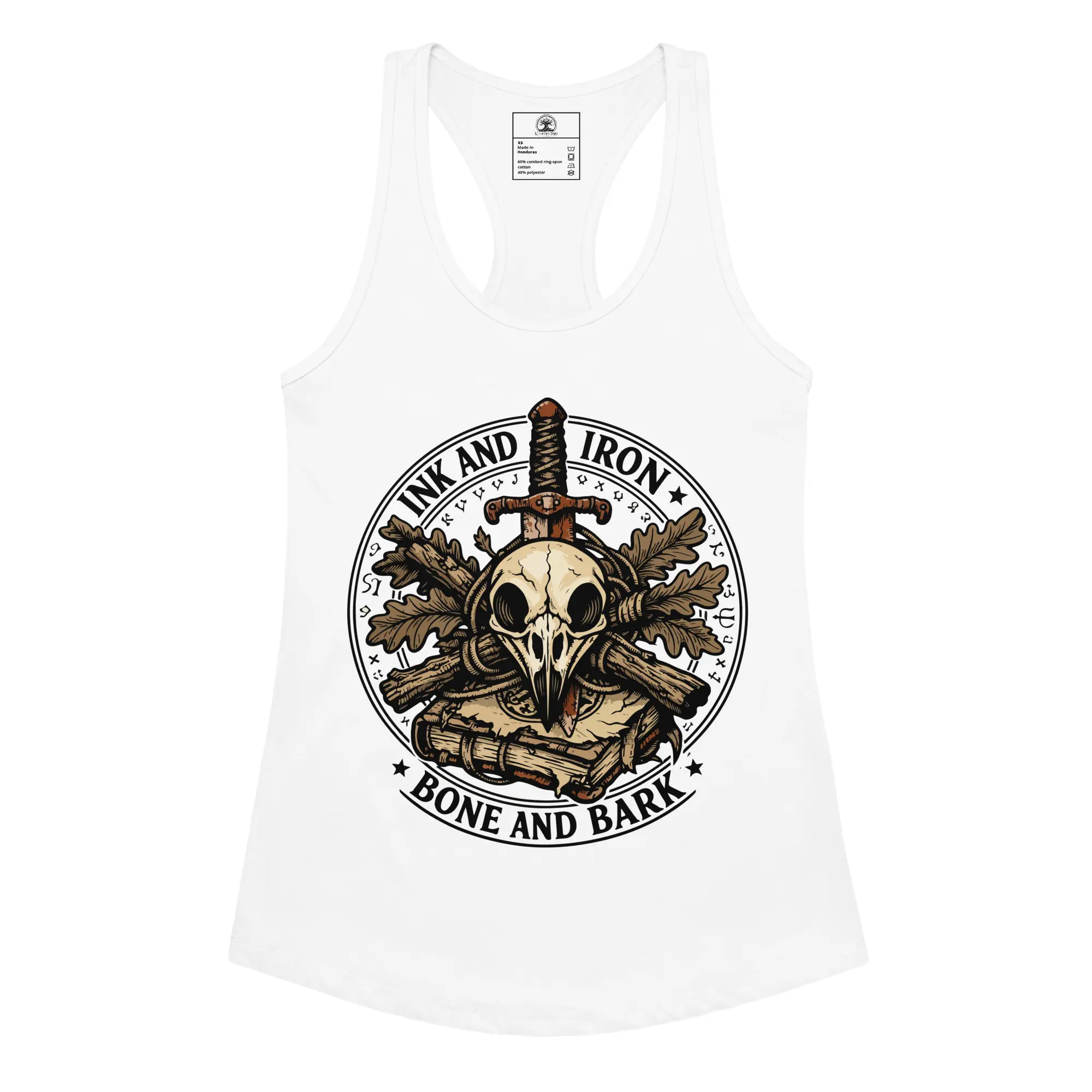 Forged in ink. This fitted racerback tank is for the women who wear their art on their sleeves—and everywhere else. The “Ink and Iron” graphic is rendered in high-fidelity detail, making it a standout piece for anyone who values a dark, technical aesthetic in a sleek, athletic cut.